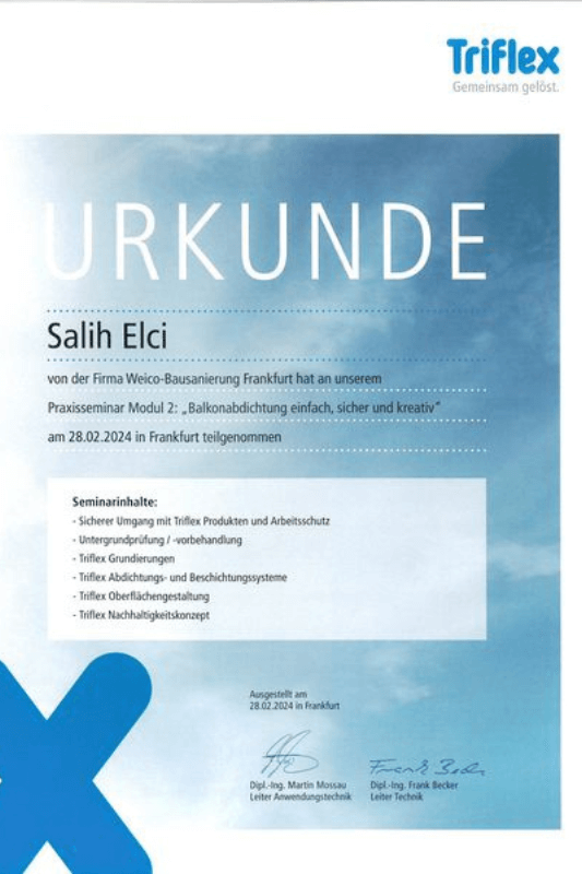 Weico Bausanierung steht für Qualität, Zuverlässigkeit und präzises Handwerk. Mit jahrelanger Erfahrung sind wir Ihr Ansprechpartner für Sanierung und Abdichtung. Unser Ziel ist es, Ihre Immobilie in neuem Glanz erstrahlen zu lassen und nachhaltige Lösungen zu schaffen, die überzeugen.